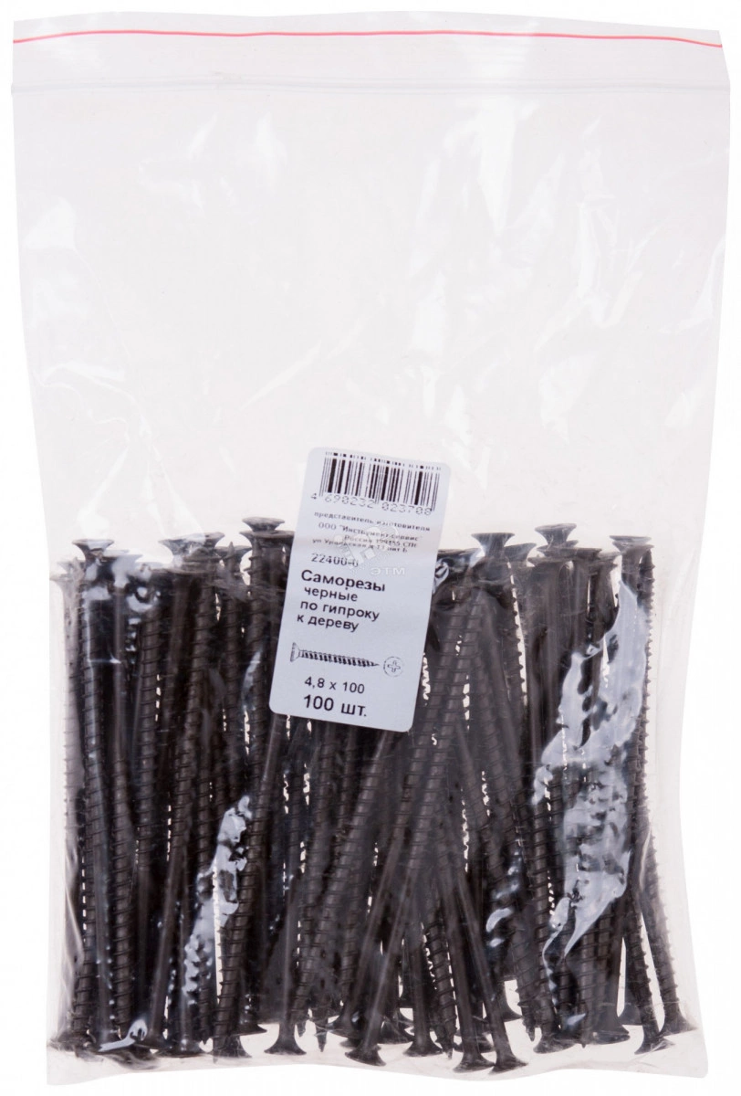 Саморез гипсокартон/дерево 4,8х100 черный (100шт)