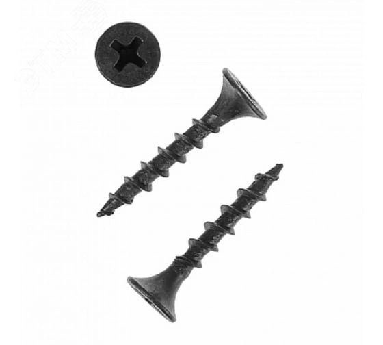 Метиз представляет собой классический остроконечный шуруп с резьбой по всему стержню. Имеет фосфатное покрытие, надёжно защищающее от коррозии, плоскую шляпку с крестообразным шлицем Phillips 2. Подходит для потайного монтажа - может быть утоплен полностью.