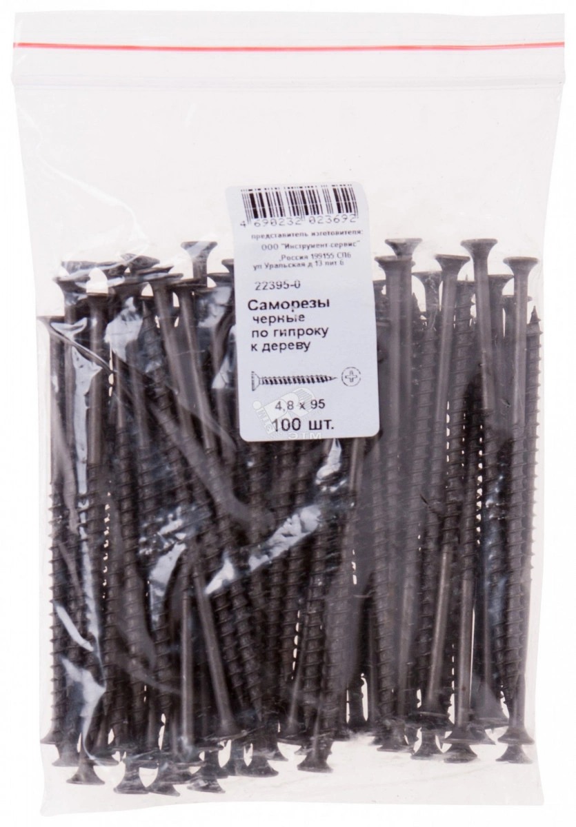 Саморез гипсокартон/дерево 4,8х95 черный (100шт)