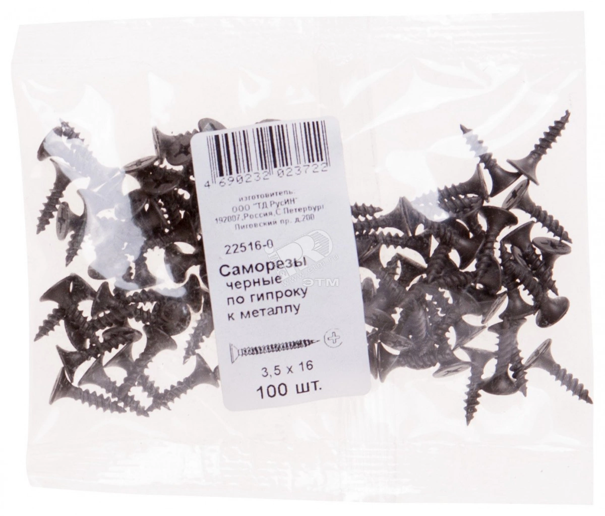 Саморез гипсокартон/металл 3,5х16 черный (100шт)
