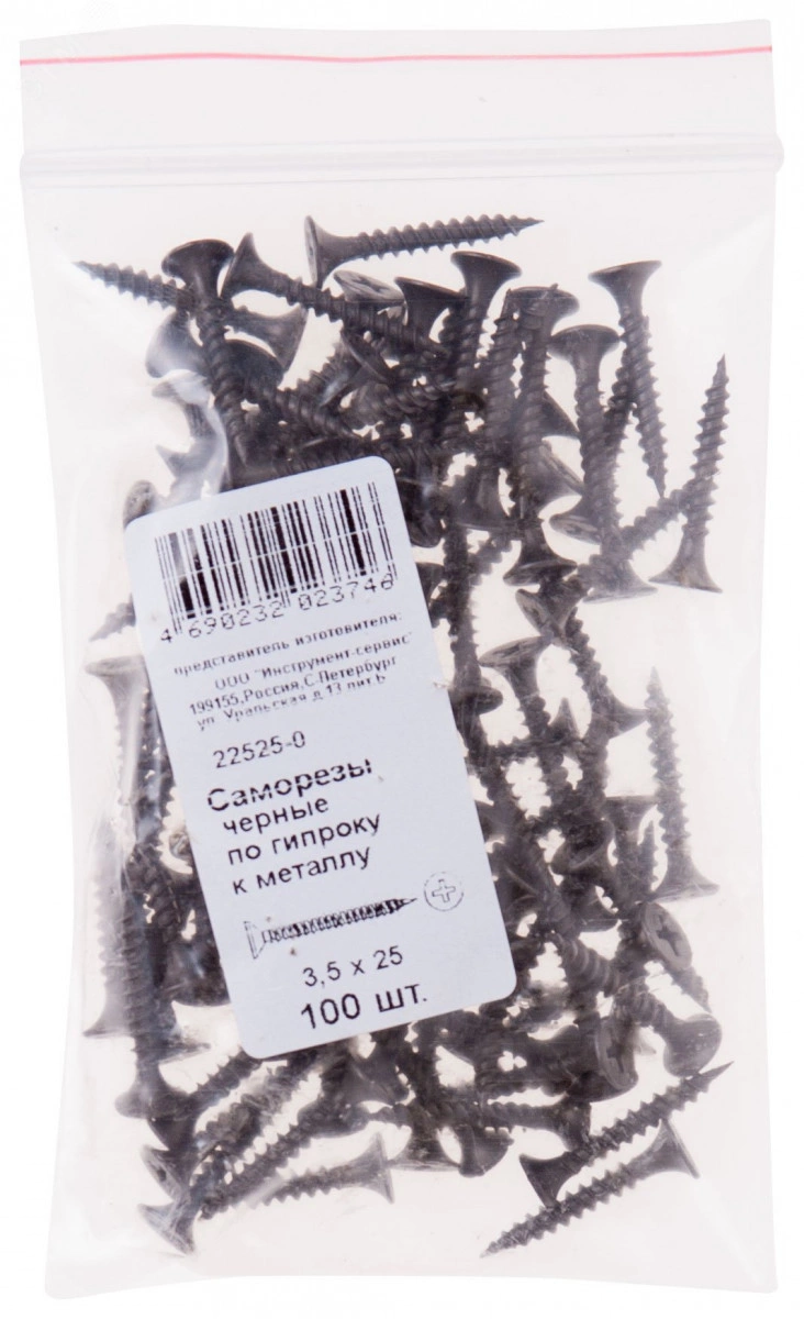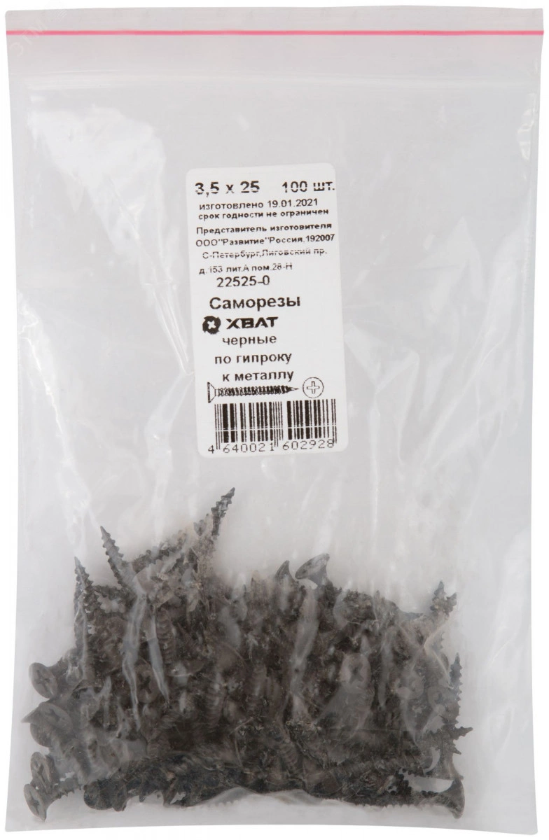 Саморез гипсокартон/металл 3,5х25 черный (100шт)