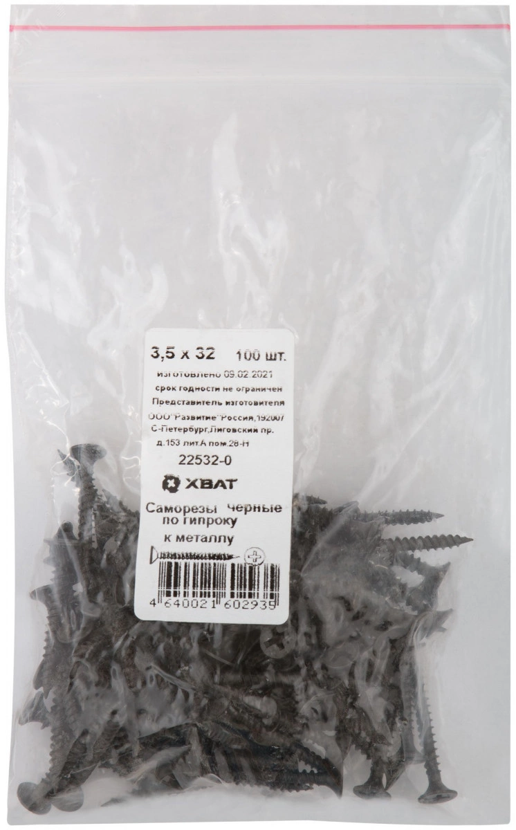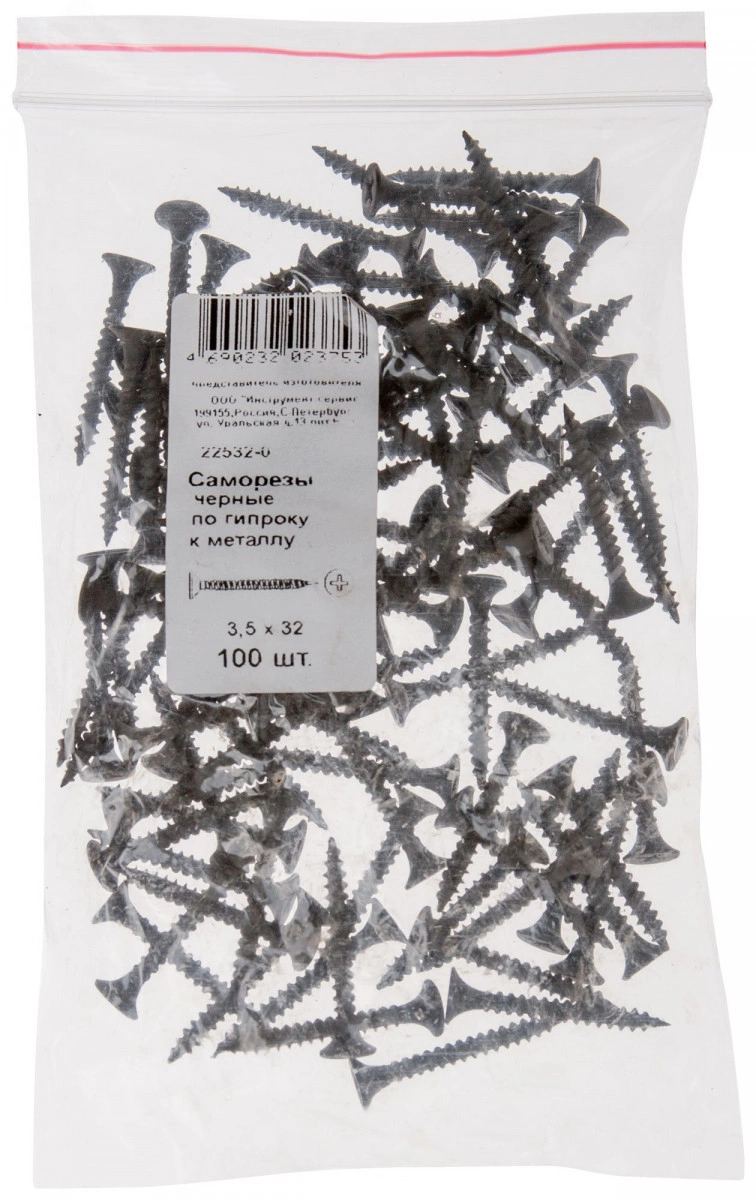 Саморез гипсокартон/металл 3,5х32 черный (100шт)
