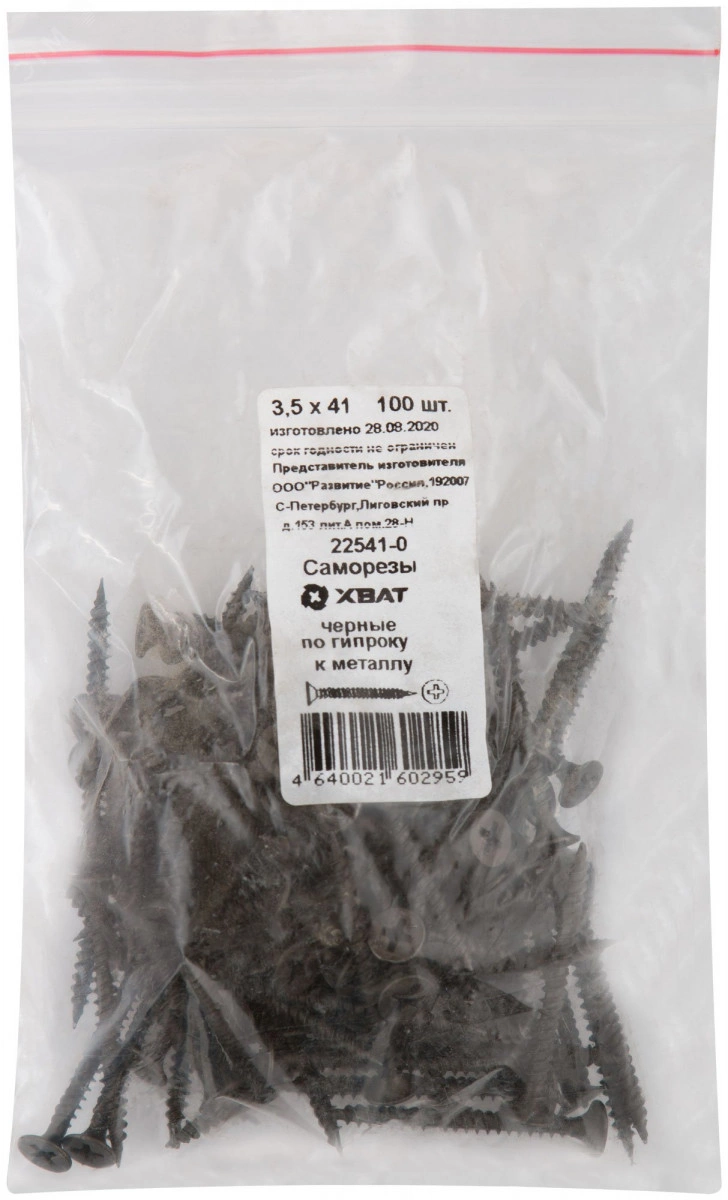 Саморез гипсокартон/металл 3,5х41 черный (100шт)