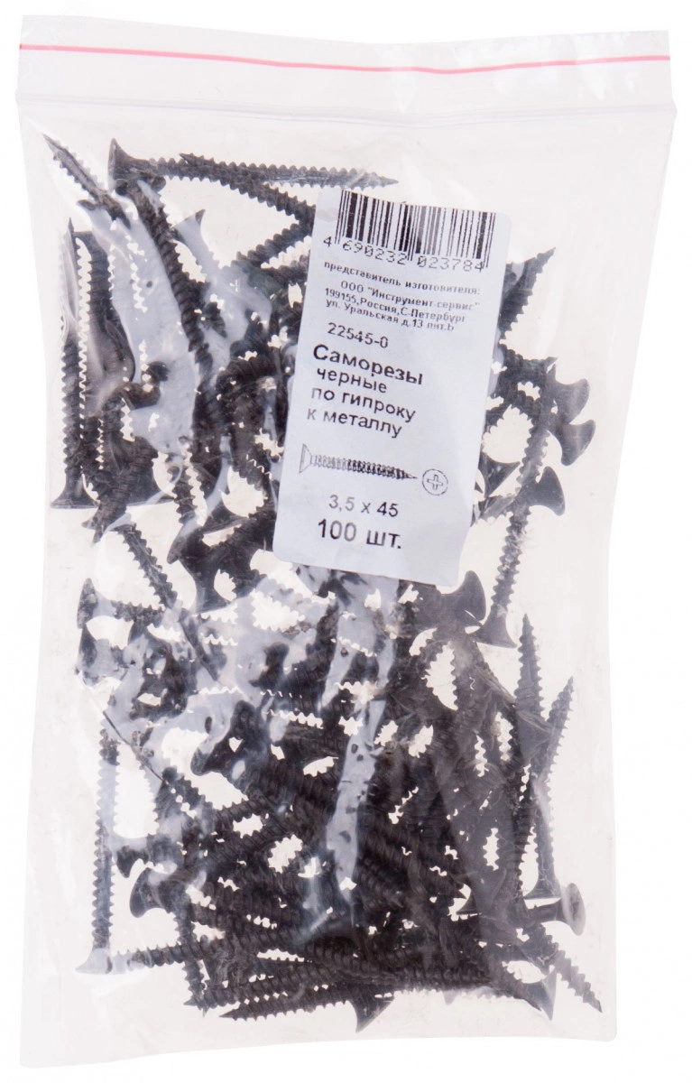 Саморез гипсокартон/металл 3,5х45 черный (100шт)