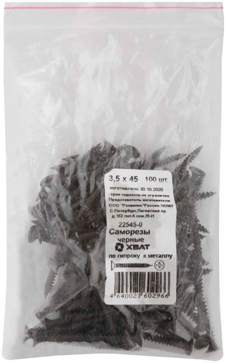 Саморез гипсокартон/металл 3,5х45 черный (500шт)