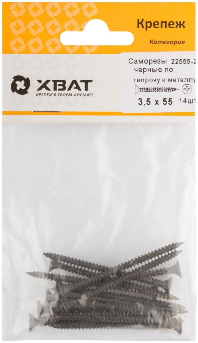 Саморез гипсокартон/металл 3,5х55 черный (14шт)
