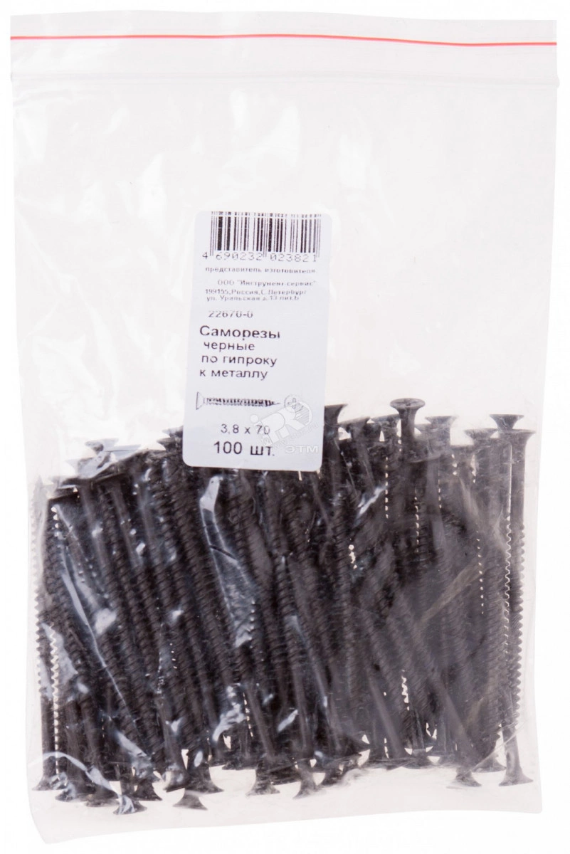 Саморез гипсокартон/металл 3,8х70 черный (100шт)