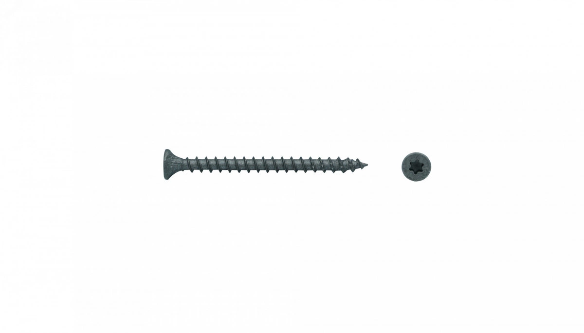 Саморезы имеют потайную головку, шлиц в форме шестигранной звезды TORX Т25, неполную крупную резьбу, острый с ребрами наконечник, который предотвращает раскалывание древесины. Не требуют предварительного засверливания. Изготовлены из стали.