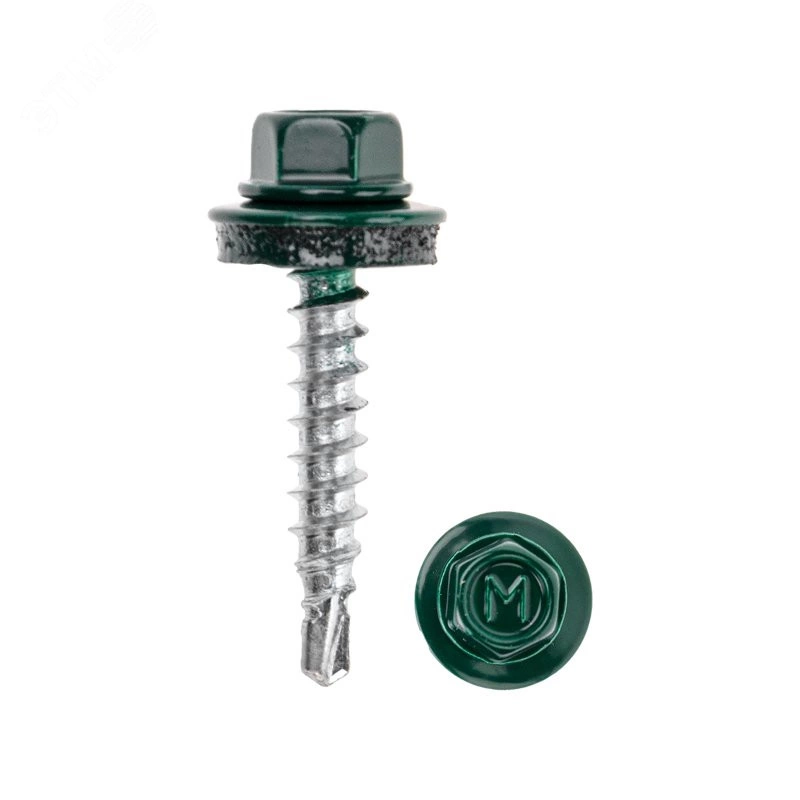 Саморез кровельный 4.8х29 RAL6029 сверло №1 шайба d=14мм с EPDM прокладкой