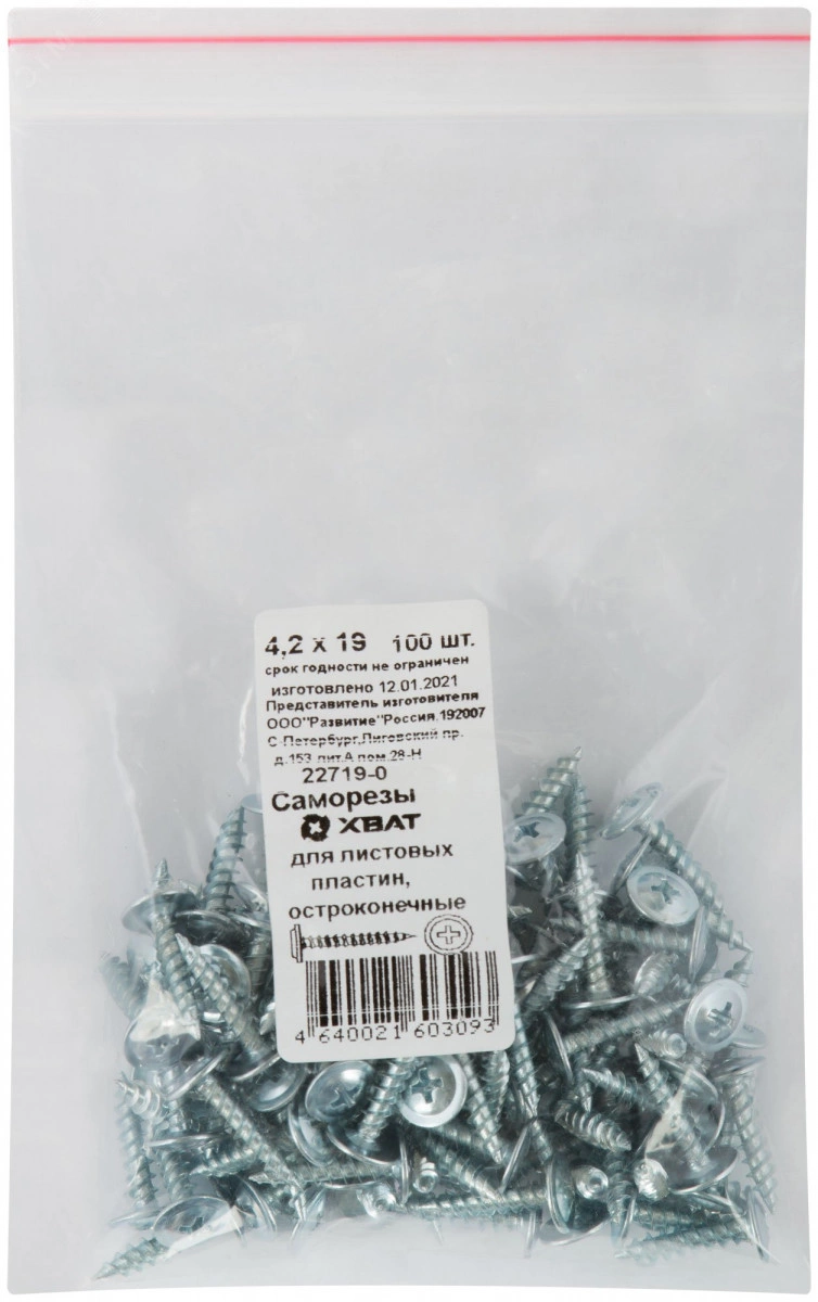 Саморез по металлу 4,2х19 остроконечный (100шт)