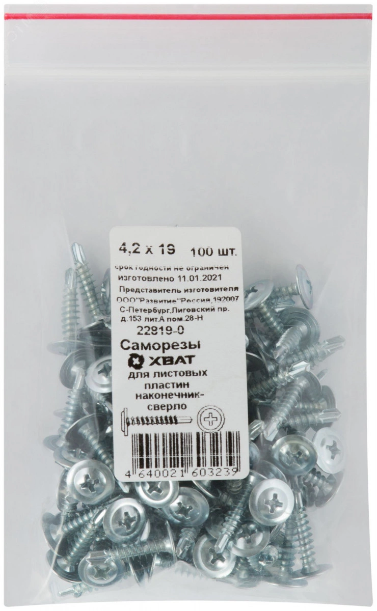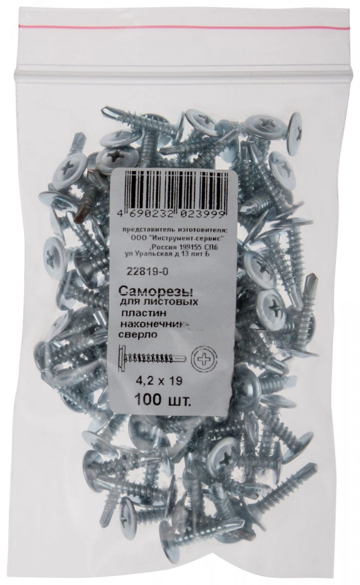 Саморез по металлу 4,2х19 сверлоконечный (100шт)