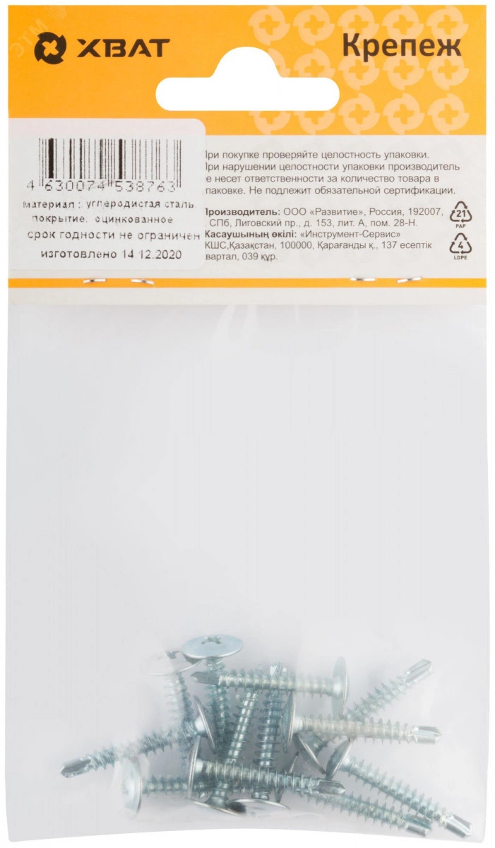 Саморез по металлу 4,2х25 сверлоконечный (12шт)