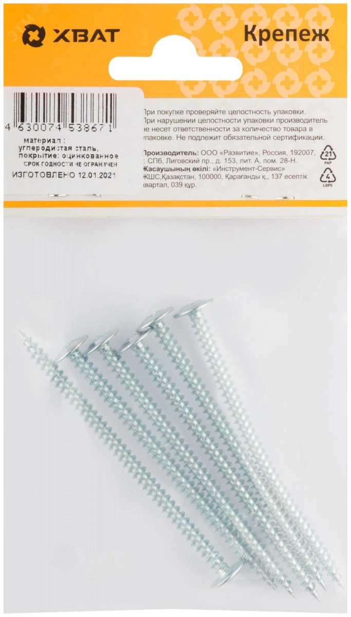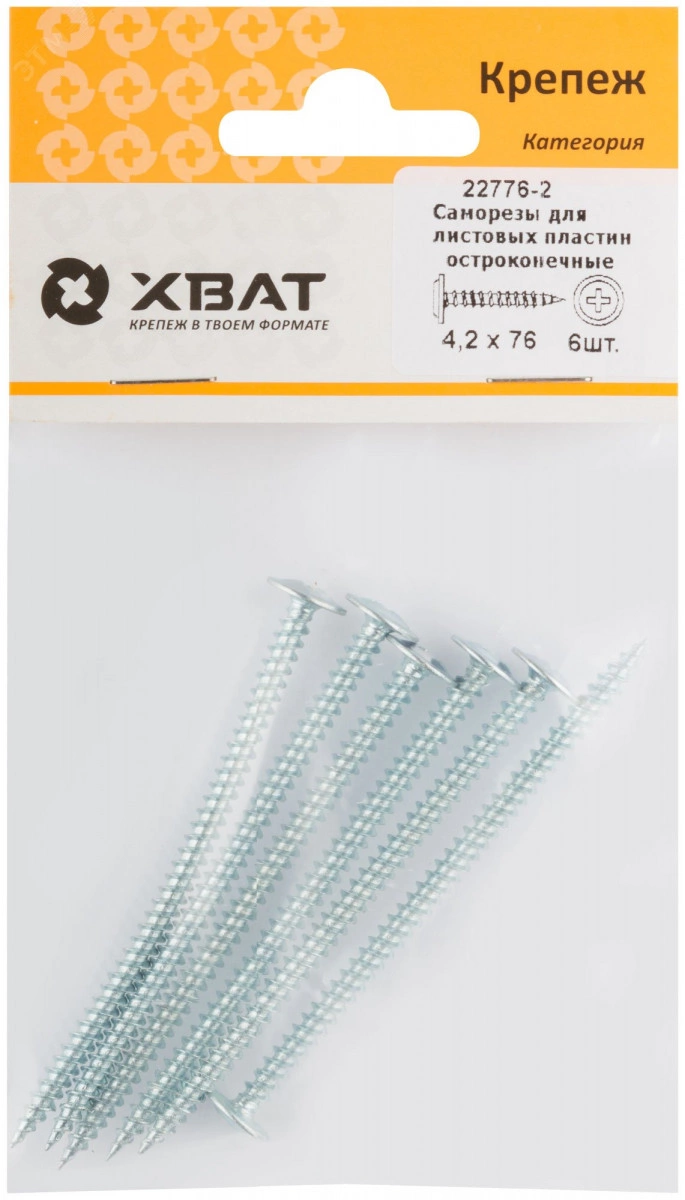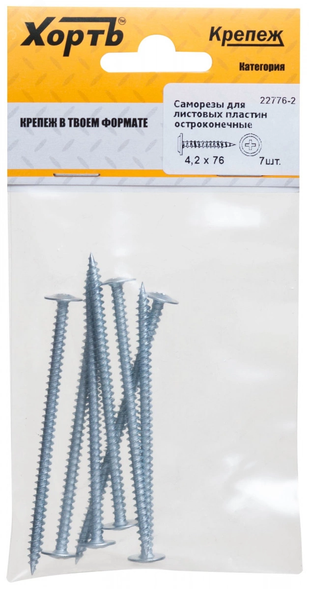 Саморез по металлу 4,2х76 остроконечный (6шт)