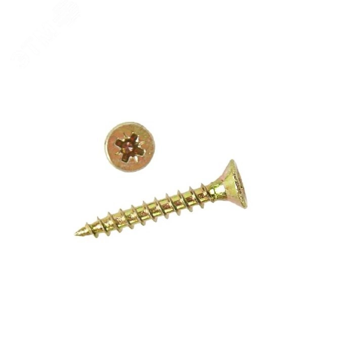 Универсальный саморез с потайной головкой широко используется для крепления различных деталей к древесине, пластмассе, ДСП и даже к тонким металлическим листам без предварительного сверления. Желтый саморез имеет потайную головку под насадку Pozidriv (PZ). А также данный метиз может использоваться для крепления в бетоне или кирпичной кладке при использовании пластикового дюбеля.