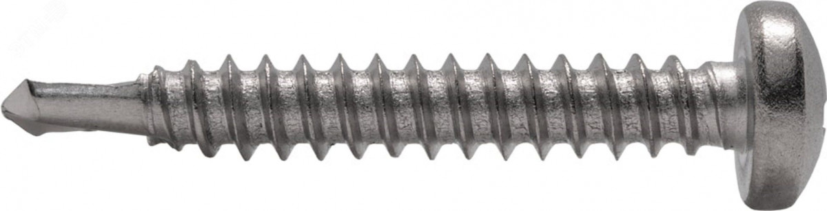DIN 7504 M Нержавеющий шуруп с полукруглой головкой с буром - используются для крепления изделий и материалов к металлическим листам и каркасам. Бур на конце позволяет крепить изделие без предварительного сверления к металлу толщиной до 5мм. Плотная, самонарезающаяся однозаходная или двухзаходная резьба.