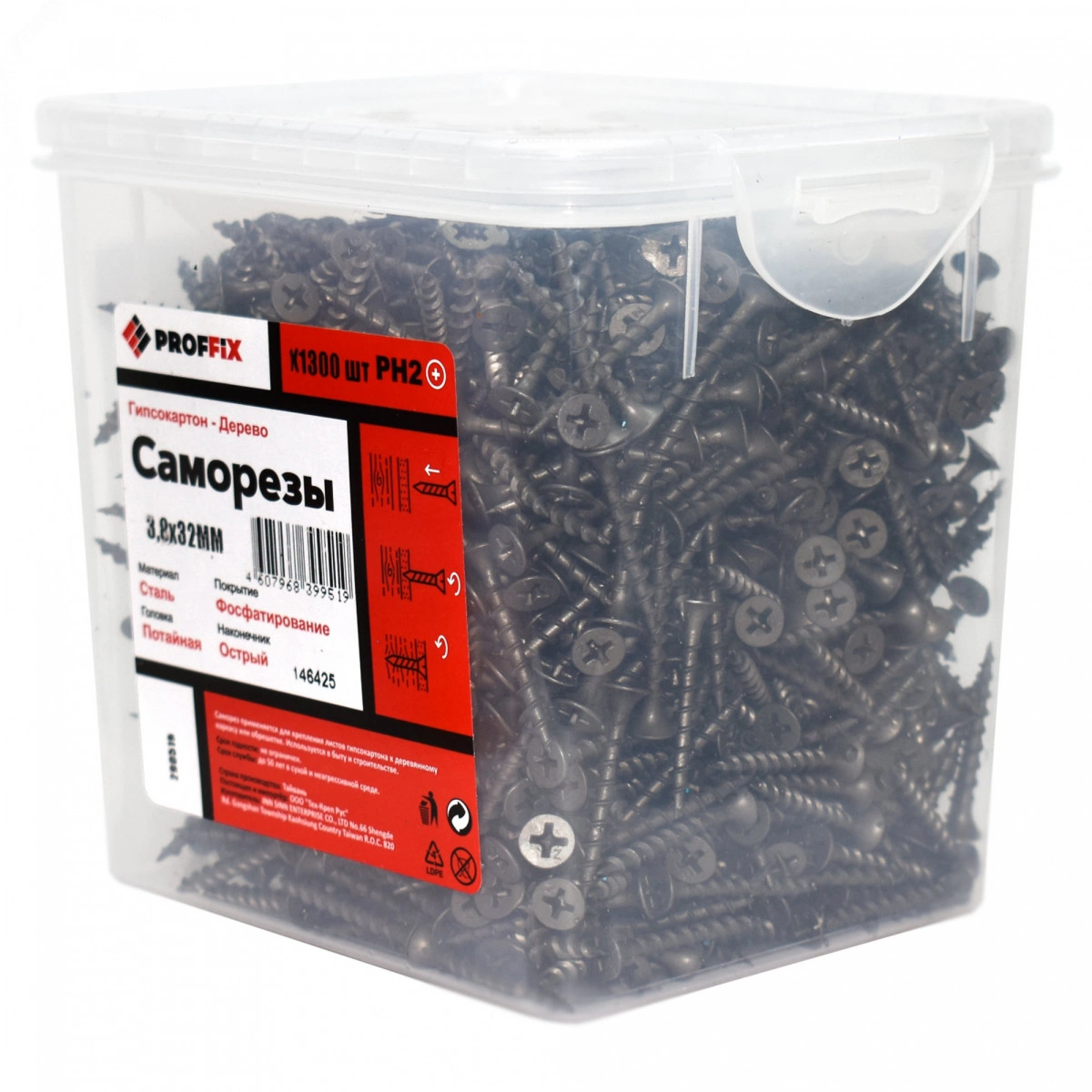 Полное описание: Саморез СГД 3,8х32 усил-й (TWN) (1300 шт) - конт-р PROFFIX