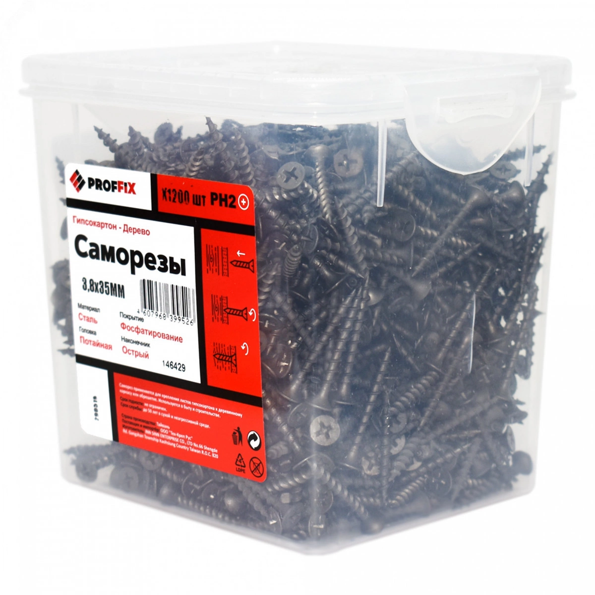Полное описание: Саморез СГД 3,8х35 усил-й (TWN) (1200 шт) - конт-р PROFFIX