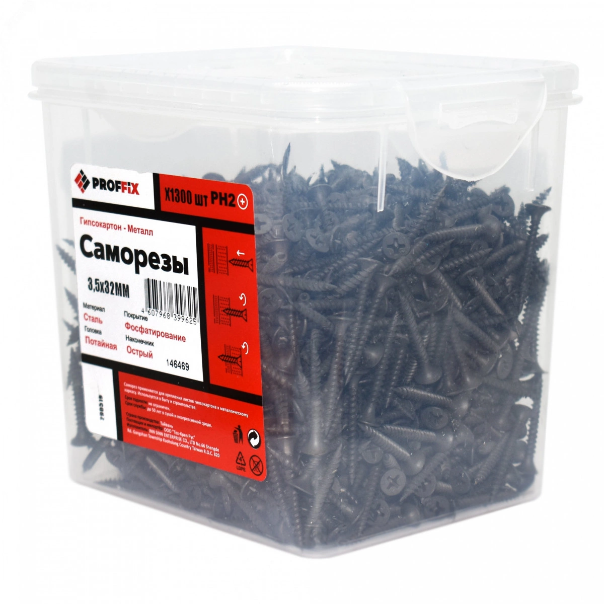 Полное описание: Саморез СГМ 3,5х32 усил-й (TWN) (1300 шт) - конт-р PROFFIX