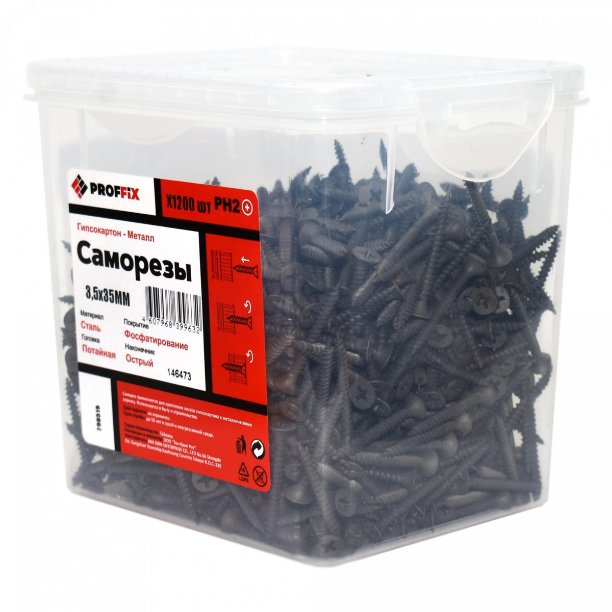 Полное описание: Саморез СГМ 3,5х35 усил-й (TWN) (1200 шт) - конт-р PROFFIX
