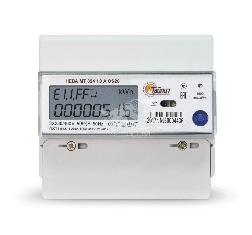 Счетчик электроэнергии НЕВА МТ 324 1.0 AO S26 трехфазный многотарифный 5(60) класс точности 1.0 D ЖКИ регион 18