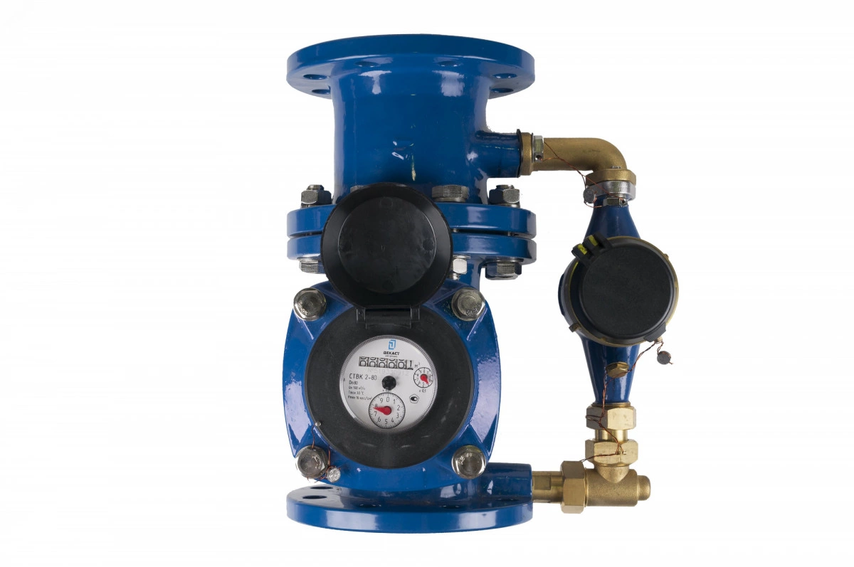 Счетчик серии СТВК-1 и СТВК-2 предназначен для измерения потребления питьевой и технической воды с максимальной температурой 30 градусов. Предназначен для систем с большой амплитудой расходов и разбросов давления. Может применяться в пожарных распределительных сетях и на объектах со значительным сезонным (суточным) колебанием расхода воды. Цена импульса - 100 литров/импульс + 10 литров/импульс для Ду 50, 80, 100 и 1000 литров/импульс + 100 литров/импульс для Ду150. Дополнительно может быть оснащен импульсными выходами, СТВК-1 или 2 ХХ/ХХ ДГ. Для определения общего объема воды, прошедшего через счетчик комбинированный СТВК, показания обоих индикаторных устройств суммируют.