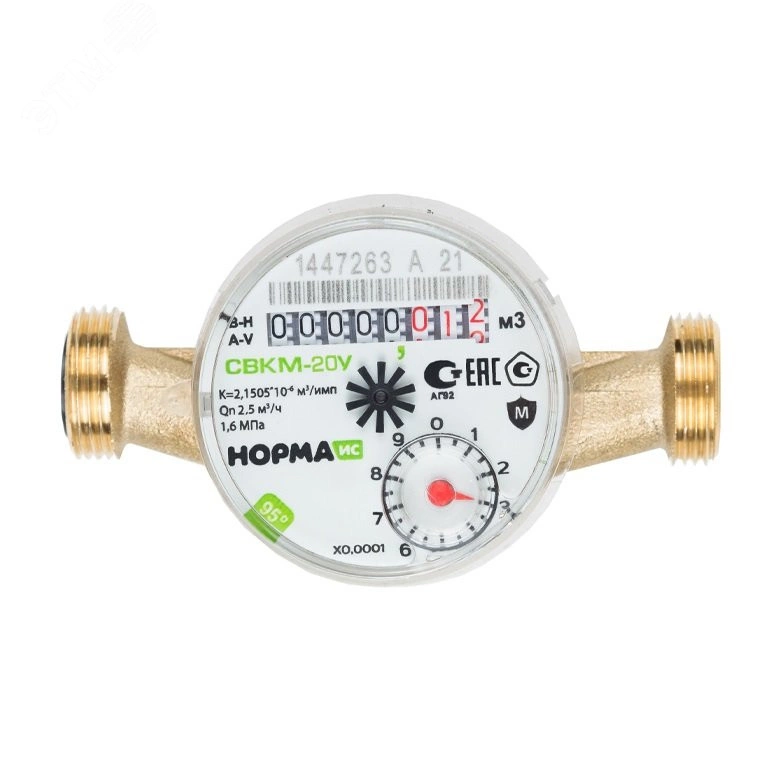 Счетчик воды Норма ИС предназначен для измерений объема питьевой воды по СанПиН 2.1.4.1074-01 и сетевой воды, протекающей по трубопроводу при температуре от +5 до +95 С и рабочем давлении в водопроводной сети не более 1,6 МПа (16 кгс/см2).
