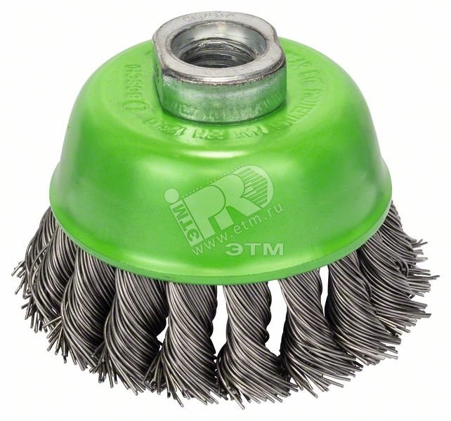 Чашечная проволочная щетка Heavy for Inox обеспечивает исключительно грубую обработку поверхности. Это щетка с пучками проволоки для применения при основательной зачистке, в том числе удаления толстых слоев ржавчины, краски или лака на средних и больших поверхностях. Чашечная проволочная щетка может применяться на поверхностях из нержавеющей стали, алюминия и других цветных металлов, Проволочные щетки имеют различную толщину для обеспечения различных абразивных характеристик. Более толстая проволока работает более агрессивно и позволяет делать грубую, но более быструю обработку поверхности, а более тонкая проволока дает более гладкий результат. Предназначена для угловых шлифовальных машин с резьбой M14.