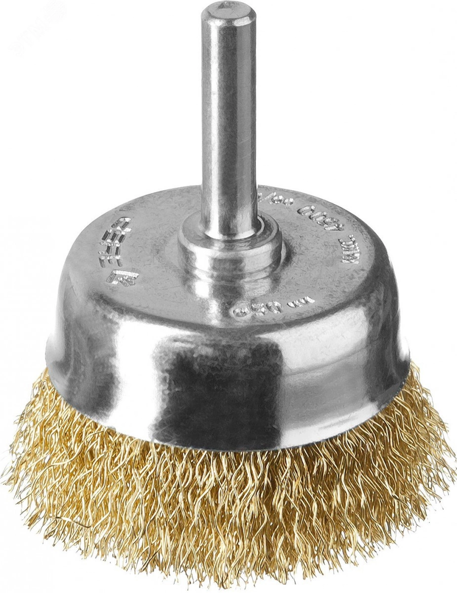 Щетка чашечная для дрели, витая латунированная стальная проволока 0,3мм, 50мм ''Профессионал''.