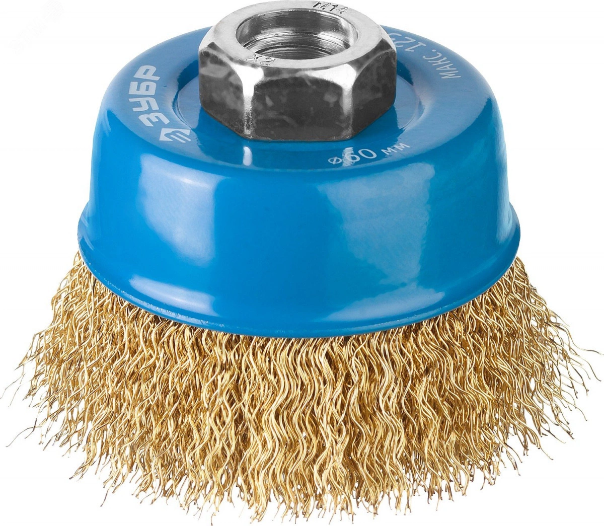 Щетка чашечная для УШМ, витая латунированная стальная проволока 0,3мм, 60ммхМ14 ''Профессионал''.