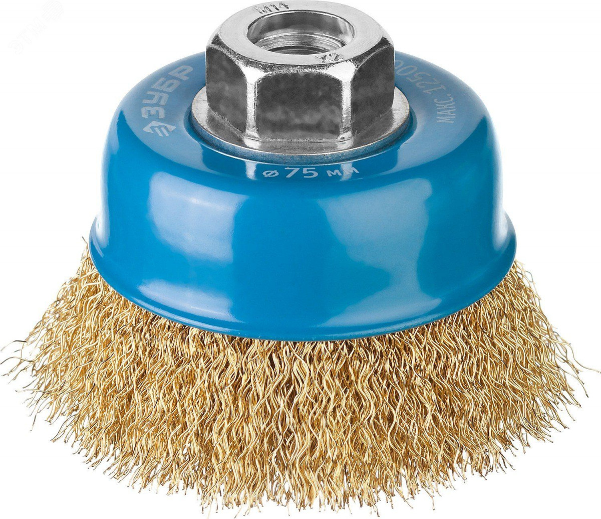 Щетка чашечная для УШМ, витая латунированная стальная проволока 0,3мм, 75ммхМ14 ''Профессионал''.