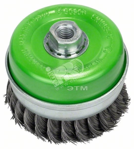 Чашечная проволочная щетка Heavy for Inox обеспечивает исключительно грубую обработку поверхности. Это щетка с пучками проволоки для применения при основательной зачистке, в том числе удаления толстых слоев ржавчины, краски или лака на средних и больших поверхностях. Чашечная проволочная щетка может применяться на поверхностях из нержавеющей стали, алюминия и других цветных металлов, Проволочные щетки имеют различную толщину для обеспечения различных абразивных характеристик. Более толстая проволока работает более агрессивно и позволяет делать грубую, но более быструю обработку поверхности, а более тонкая проволока дает более гладкий результат. Предназначена для угловых шлифовальных машин с резьбой M14.