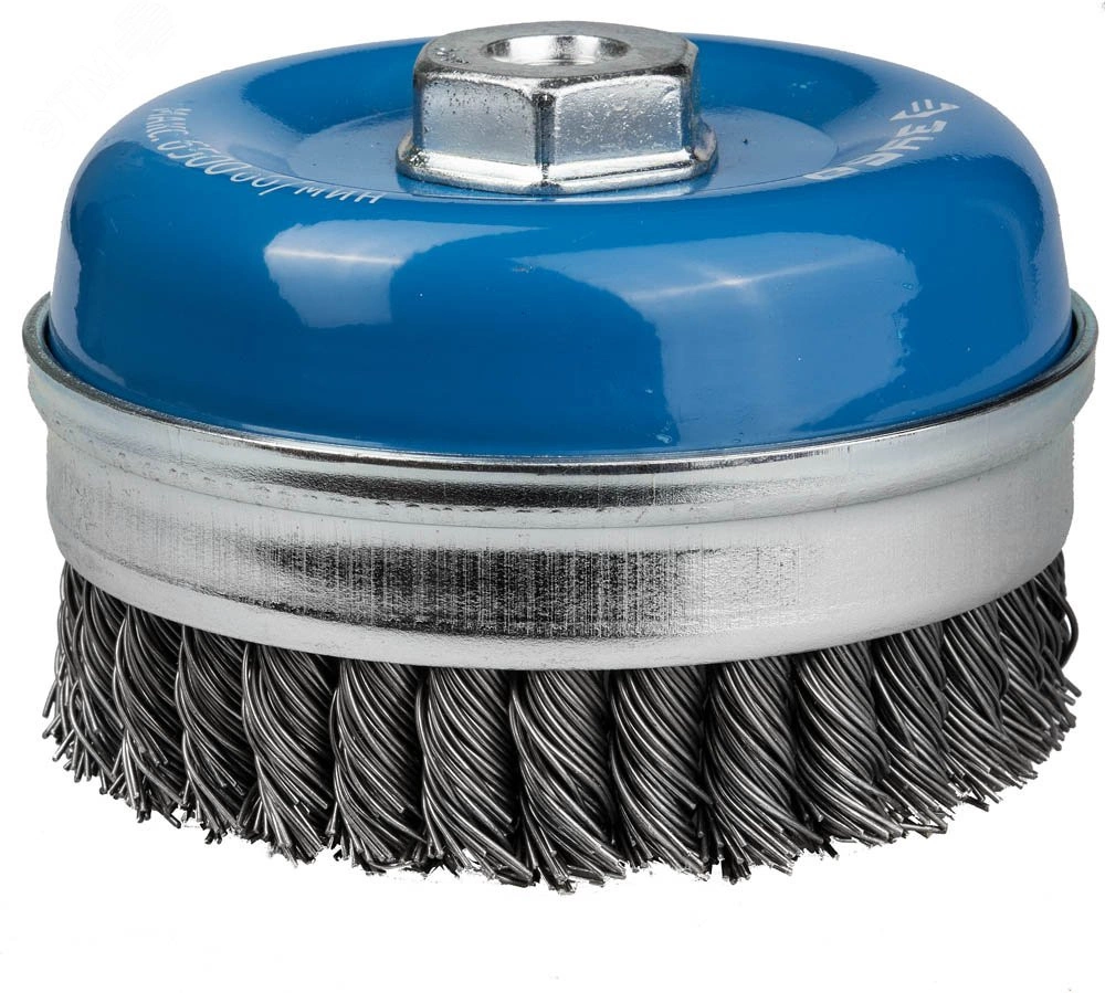 Щетка чашечная усиленная для УШМ, плетеные пучки стальной проволоки 0,5мм, 120ммхМ14 ''ЭКСПЕРТ''.