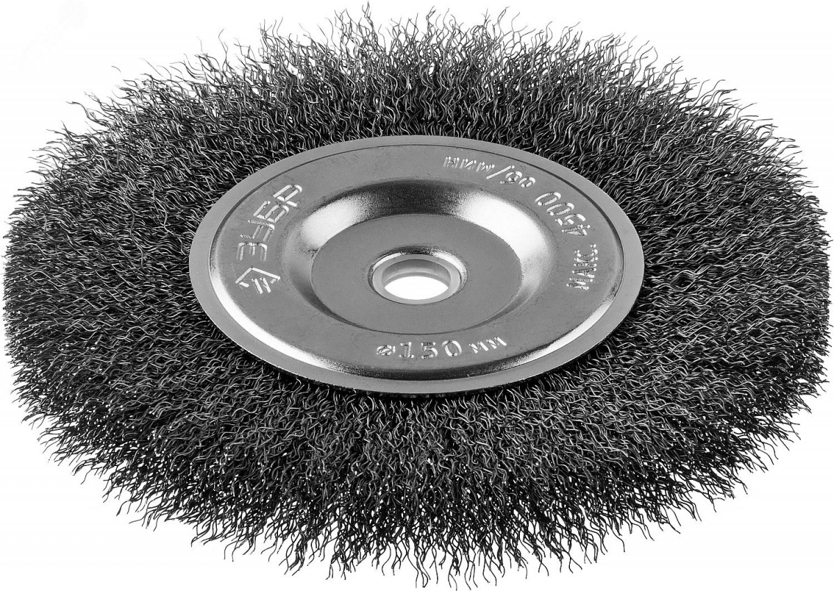 Щетка дисковая для точильно-шлифовального станка, витая стальная проволока 0,3мм, 150х12,7мм ''Профессионал''.