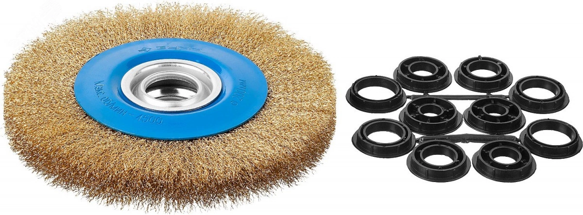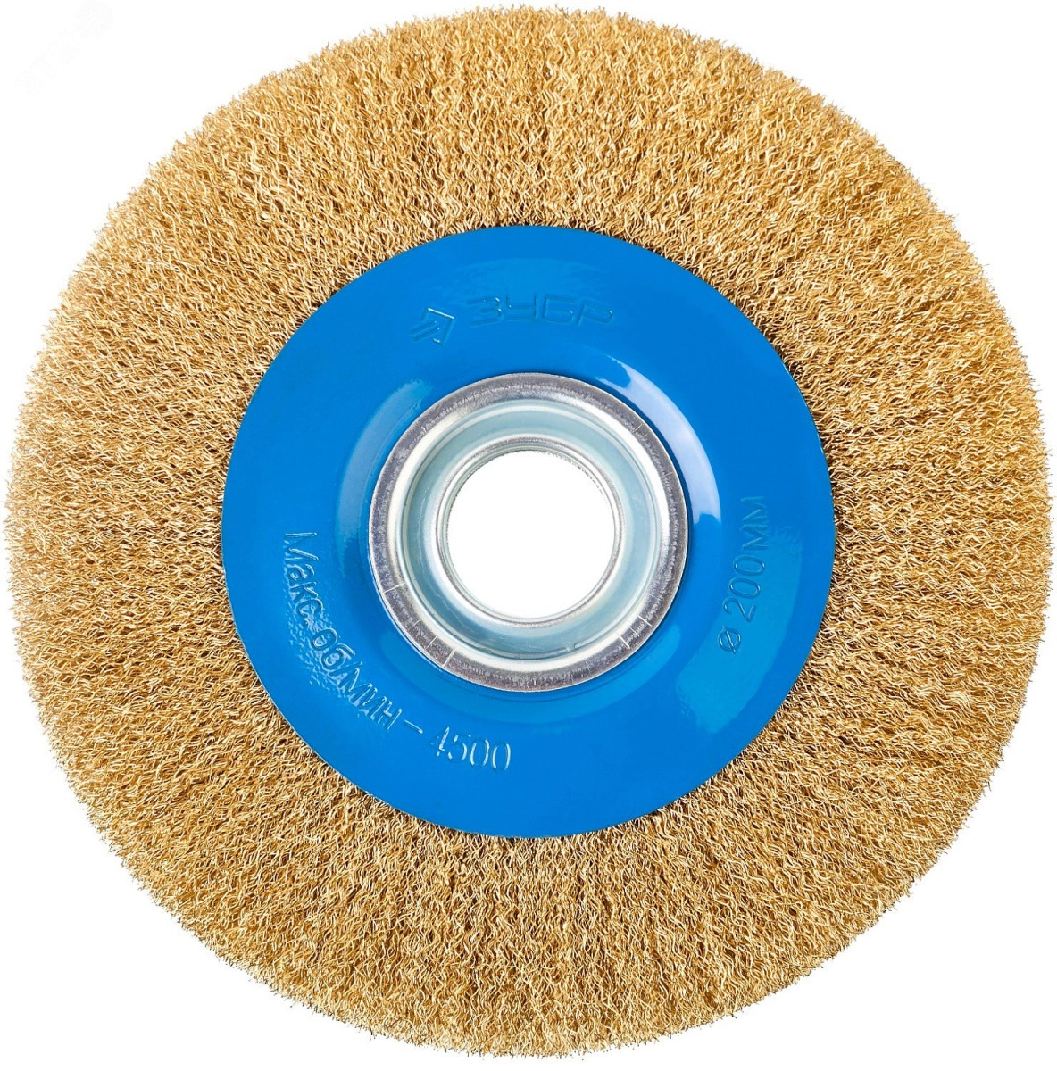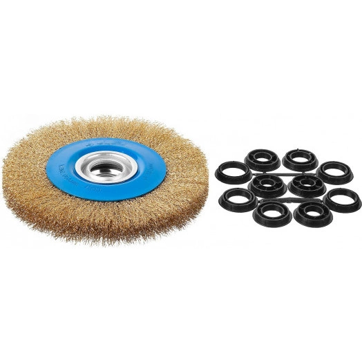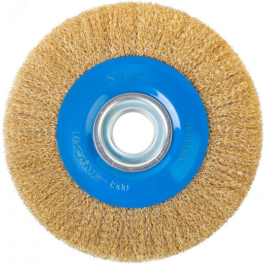 Щетка дисковая для точильно-шлифовального станка, витая стальная латунирован проволока 0,3мм, 200х32мм ''Профессионал''.