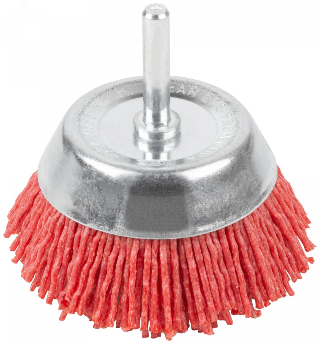 Щетка для дрели, тип ''Чашка'' со шпилькой, нейлоновая, зернистость Р80. Это особый тип оснастки для электроинструмента, предназначенный для работы с мягкими деликатными материалами. Применяется при зачистке и шлифовке мягких пород древесины и некоторых металлов (алюминия, меди и т. д.). Удаляет с поверхности различные загрязнения, ржавчину и заусенцы. Мягкая зачистка, нейлоновая. Упаковка – блистер.