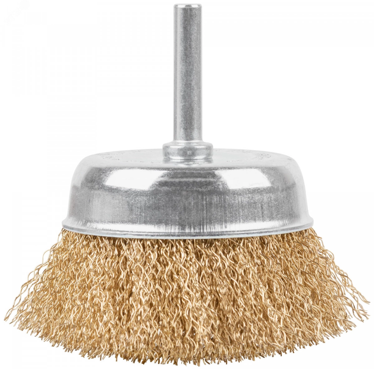 Щетка для дрели, тип ''Чашка'', латунированная витая проволока 0,3 мм, 75 мм, Profi