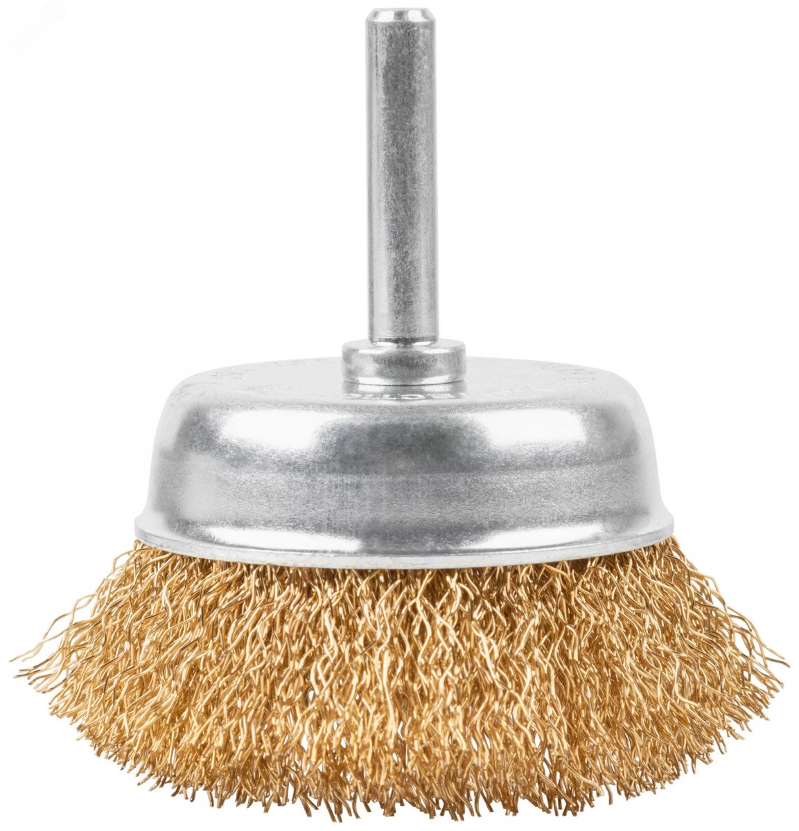 Щетка для дрели, тип ''Чашка'', латунированная витая проволока 0,3 мм, 65 мм, Profi