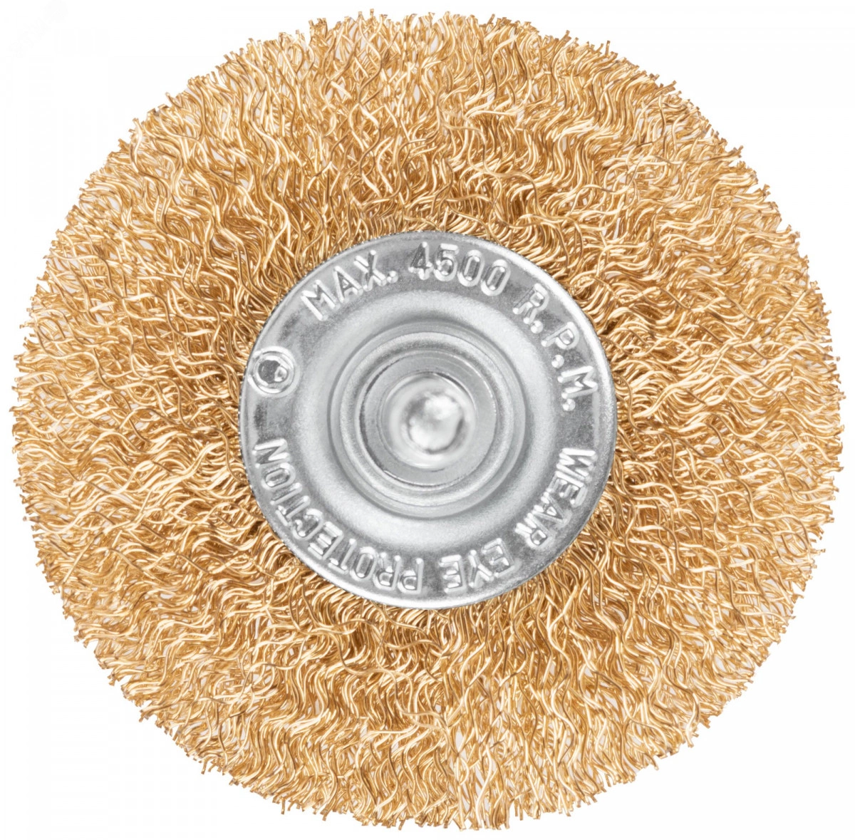 Щетка для дрели, тип ''Плоская'', латунированная витая проволока 0,3 мм, 65 мм, Profi