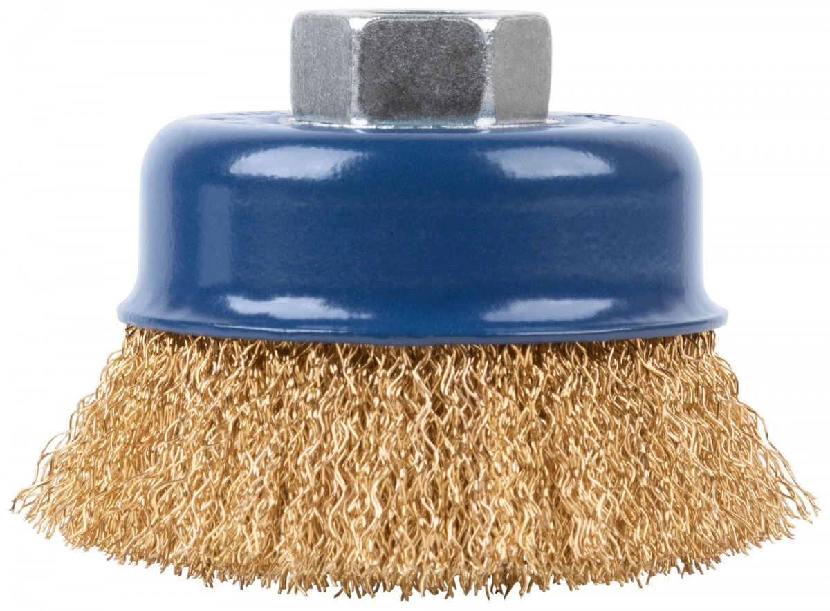 Щетка для УШМ, М14, Чашка, латунированная витая проволока 0,3 мм, 65 мм, блистер, Profi