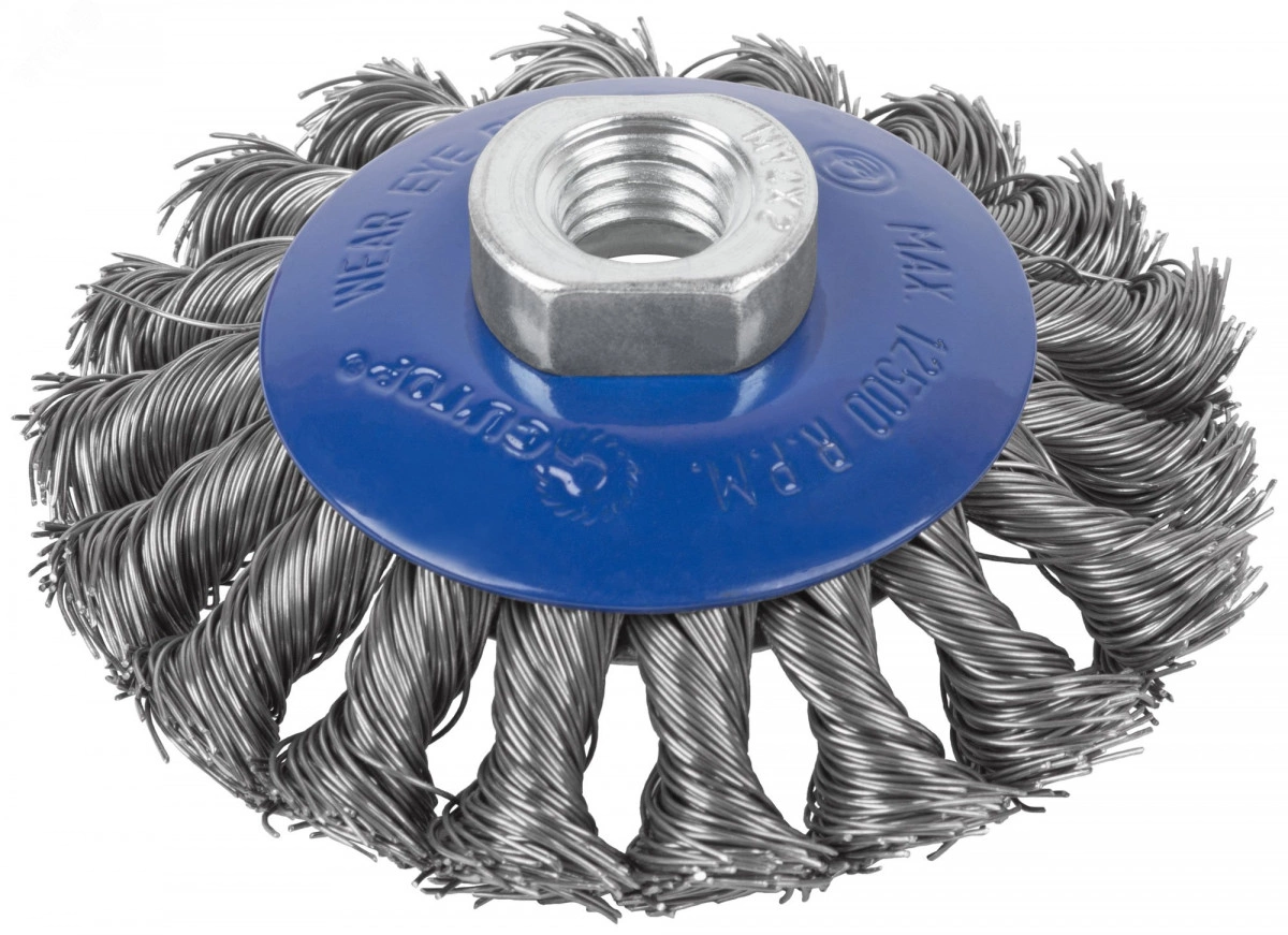 Щетка для УШМ, М14, Тарелка, крученая проволока 0,5 мм, 100 мм, блистер, Profi