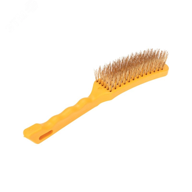 Ручная щетка используется для зачистки металлических, деревянных и других поверхностей от загрязнений, ржавчины и старых лакокрасочных покрытий. Применяется во время строительных и ремонтных работ, оптимально подходит для бытового использования. Пучки проволоки расположены в 6 рядов, что создает достаточно плотную и жесткую поверхность для удаления даже самых упорных загрязнений. Щетина надежно закреплена в основании и не выпадает во время работы. Латунированное покрытие значительно продлевает срок службы щетки. Эргономичная рукоятка, изготовленная из высококачественного пластика, обеспечивает хороший захват и удобство в работе.