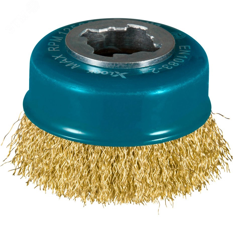 Щетка проволочная чашечная X-lock (d75 мм, толщина проволоки 0,3 мм, гофрированная, латунь)