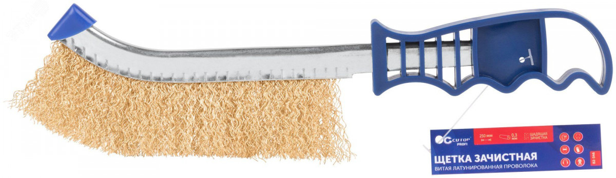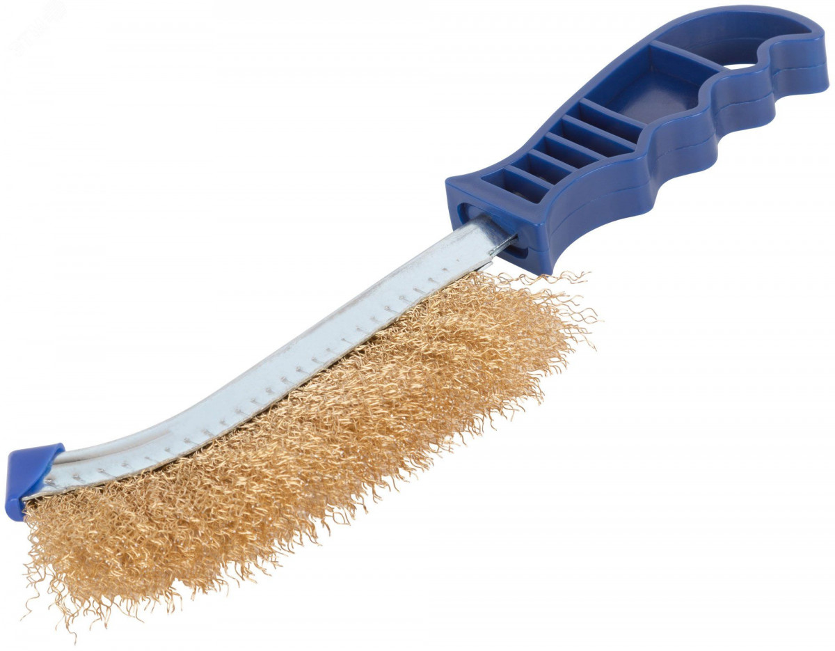 Щетка зачистная, латунированная витая проволока 0,3 мм, пластиковая ручка, 250 мм, Profi