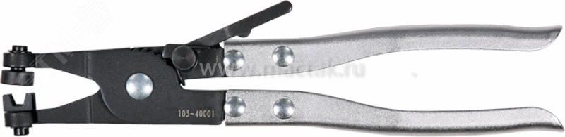 Снятие и установка ленточных хомутов. Применяется на станциях технического обслуживания (СТО), автосервисах, автомастерских, в промышленности. Поворотные губки - доступ к хомуту под любым углом. Фиксатор с пружиной - не требует усилий для удержания хомута во время снятия или установки. Насечка на рукоятках - надежная фиксация инструмента в руке