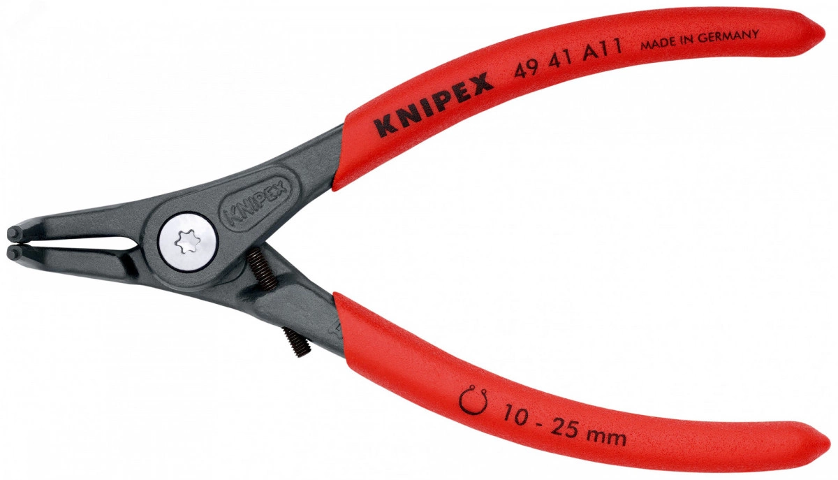 Прецизионные щипцы для стопорных колец C высокой нагрузочной способностью в условиях длительного применения - срок службы дольше до 10 раз по сравнению с обточенными наконечниками. c запрессованными наконечниками для безопасной работы. высоко нагруженные, для продолжительных работ. прецизионный винтовой шарнир с легким ходом. кованые. большие контактные поверхности наконечников. без перекоса колец, легкий монтаж. удлиненная головка щипцов для оптимального доступа к детали. внутренняя пружина, защищенная от загрязнения или ее утери. Ручки, покрытые противоскользящим пластиком. DIN 5254 В. изогнутые под углом 90 градусов концы. со специальным ограничителем раскрытия наконечников для установки стопорных колец по стандарту DIN 471. регулируемый винтовой упор защищает стопорные кольца от чрезмерного раскрытия. Диапазон диаметров валов - диаметр 10?-?25