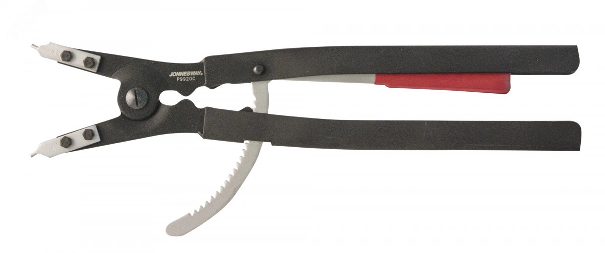 Щипцы для демонтажа стопорных колец. Группа специального шарнирно-губцевого инструмента, применяемого для производства работ, связанных с демонтажем и установкой стопорных колец. По области применения данные инструменты разделяются на два типа - щипцы для внутренних стопорных колец и для внешних. Специальные щипцы для стопорных колец больших диаметров (165-300 мм) с отверстиями 4.5-5.5 мм. серии ''Р99'' применяются в качестве крепежных элементов в конструкциях тяжелой автотракторной и сельскохозяйственной техники, в строительстве и продукции машиностроения. Щипцы снабжены реечным фиксатором положения губок и длинными рукоятками, обеспечивающими передачу большого усилия на детали. Особенностью конструкции является накладные, закрепленные механически рабочие части изделий.
