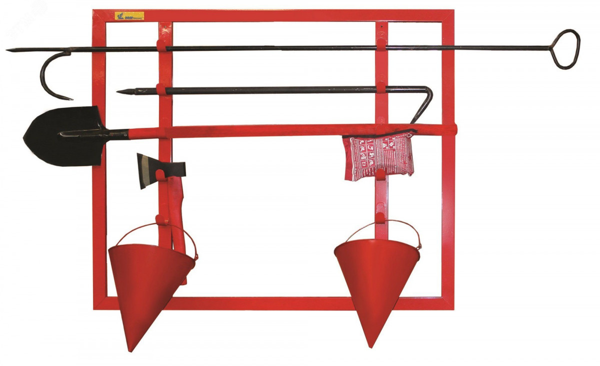 Щит предназначен для размещения и хранения пожарного инвентаря (багор, лом, лопата, ведро, топор), огнетушителей, противопожарного полотна.