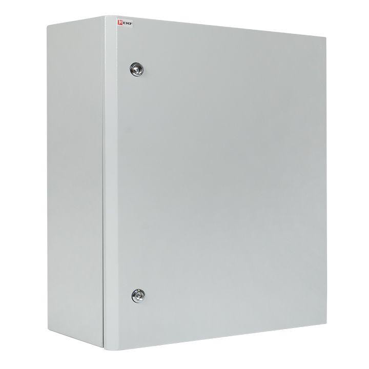 Навесной, с дверцей и замком. Предусмотрена монтажная панель. Изготовлен из стали, покраска серого цвета. Размеры: 500 х 400 х 220 мм. Защищен от проникновения пыли и влаги (IP54).