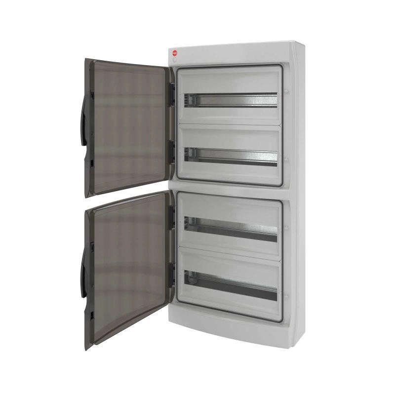 Полное описание: Щиток настенный с дверцей 72 мод. IP65 с клеммным блоком 63А сер. DKC RB72W6TGD