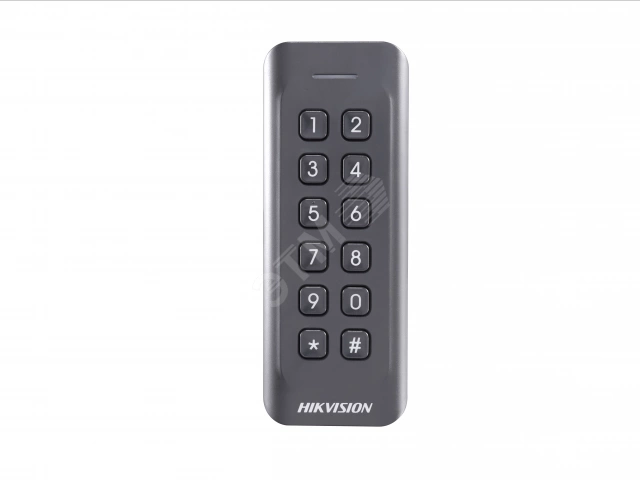 Hikvision DS-K1802EК - считыватель EM карт с механической клавиатурой. Частота считывания 125КГц. Дальность считывания больше или равна 50 мм. Поддержка протокола Wiegand (W26/W34). Питание DC12В, 2Вт. Рабочие условия от -40C до +70C. Защита IP65. Размер 115.9х43.3х17мм. Материал корпуса пластик.